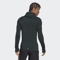 Zelene Adidas Osnovne Stvari Odražavaju Se U Tamnoj Majici S Kapuljačom Od Polarnog Flisa