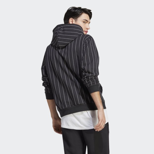 Adidas Crna Majica S Kapuljačom Od Flisa Na Pruge