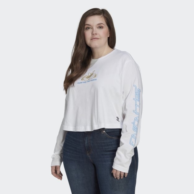 Bijela Skraćena Majica Dugih Rukava (velika Veličina) Adidas
