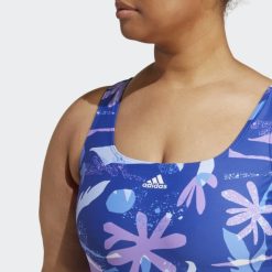 Cvjetni Kupaći Kostim S 3 Pruge (plus Size) Plavi Adidas