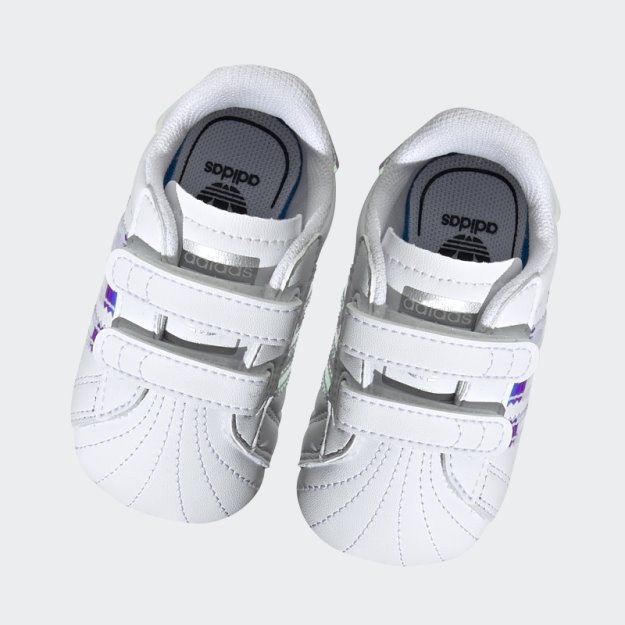 ove Cipele Za Dojenčad Minijaturna Su Verzija Adidasovih Superstar Cipela, Sve Do Legendarnog školjkastog Vrha. Meko I Fleksibilno Gornjište Od Kože Grli I Najmanja Stopala. Preljevni Detalji Reflektiraju Svjetlost. Kopče Na čičak Olakšavaju Stavljanje I Skidanje.