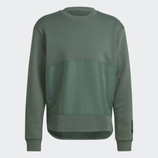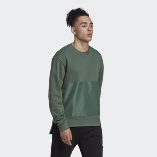 Flis Tkani Crew Sweatshirt Adidas Zeleni Oksid
