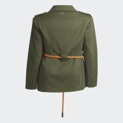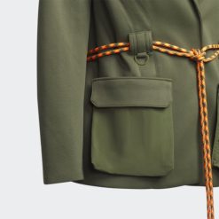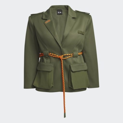 Kroj Ove Adidas X Ivy Park Jakne Odijela Stvara Odvažnu Siluetu S Izbočenim Ramenima I Elegantnim Krojem. Naklon Vanjskom, Ima Pojas S Bungee Užetom Koji Se Ističe Na čistoj Silueti, Obavija Struk I Proteže Se Sprijeda Od D-prstena. Epolete Na Ramenima I Brendirane Igle Na Reveru Mogu Se Ukloniti Ili Ostati Na Mjestu.
