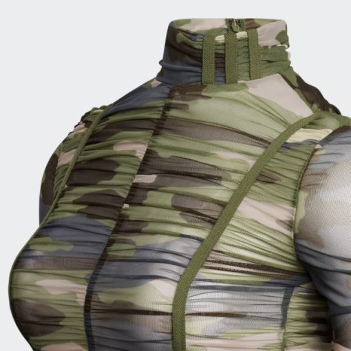 adidas X Ivy Park Naborani Catsuit Je Puna Proslava Vašeg Tijela I Oblika. Svaki Centimetar Dobiva Malo Ljubavi S čistim Mrežastim Materijalom Koji Obavija Tijelo Neospornim Kamuflažnim Printom. Elastična Traka Kroz Cijeli Dizajn Stvara Konture Kako Bi Naglasila Vaše Obline. Bez Obzira Na To Je Li Komad Slojevit Ili Se Nosi Samostalno, Nabrana Tkanina Dodaje Teksturu I Vizualni Dojam.