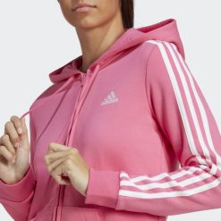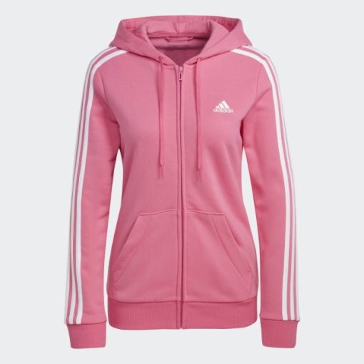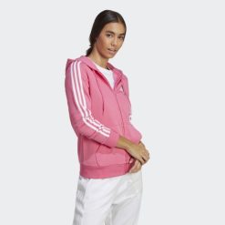Magenta Adidas Essentials Majica S Kapuljačom Od Flisa S 3 Pruge I Punim Patentnim Zatvaračem