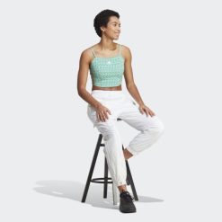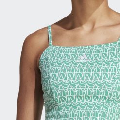 Dajte Znak 90-ima S Ovom Adidas Majicom Bez Rukava U Stilu Korzeta. Otisak Monograma Po Cijeloj Površini Je Upečatljiv Način Da Signalizirate Svoju Vjernost 3-prugama. Izrađena Od Rastezljive Pamučne Tkanine, Ova Majica U Obliku Figure Meka Je Na Koži. Naramenice Za špagete I Blago Zaobljeni Rub Održavaju Izgled čistim.