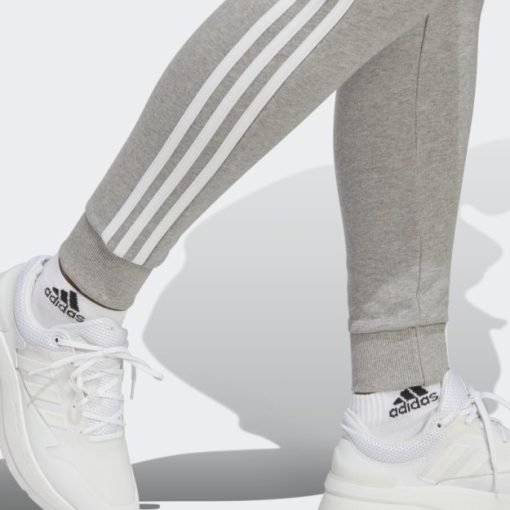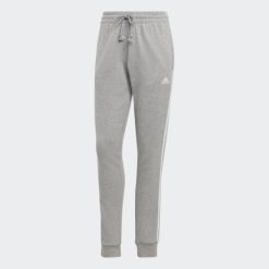Osnovne Frotirske Hlače S Manžetama Na 3 Pruge Srednje Sive Adidas