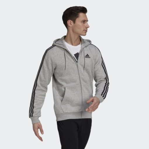 Srednje Siva Adidas Majica S 3 Pruge Od Osnovnog Flisa S Patentnim Zatvaračem