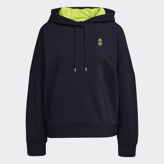 Glasno I Ponosno. šarene Boje Na Ovoj Adidas Nogometnoj Majici S Kapuljačom Dolaze Ravno Iz živopisnog Trećeg Dresa Manchester Uniteda. Od One Suptilne Klupske Značke Na Prsima Do Udobne Podstave Kapuljače, Njegovi Jarkozeleni Detalji Iskaču Iz Tintnoplave Frotir Tkanine. Labavi Kroj I Prostrana Kapuljača Osiguravaju Malo Opušteniji Osjećaj. Naši Proizvodi Od Pamuka Podržavaju Održiviji Uzgoj Pamuka.
